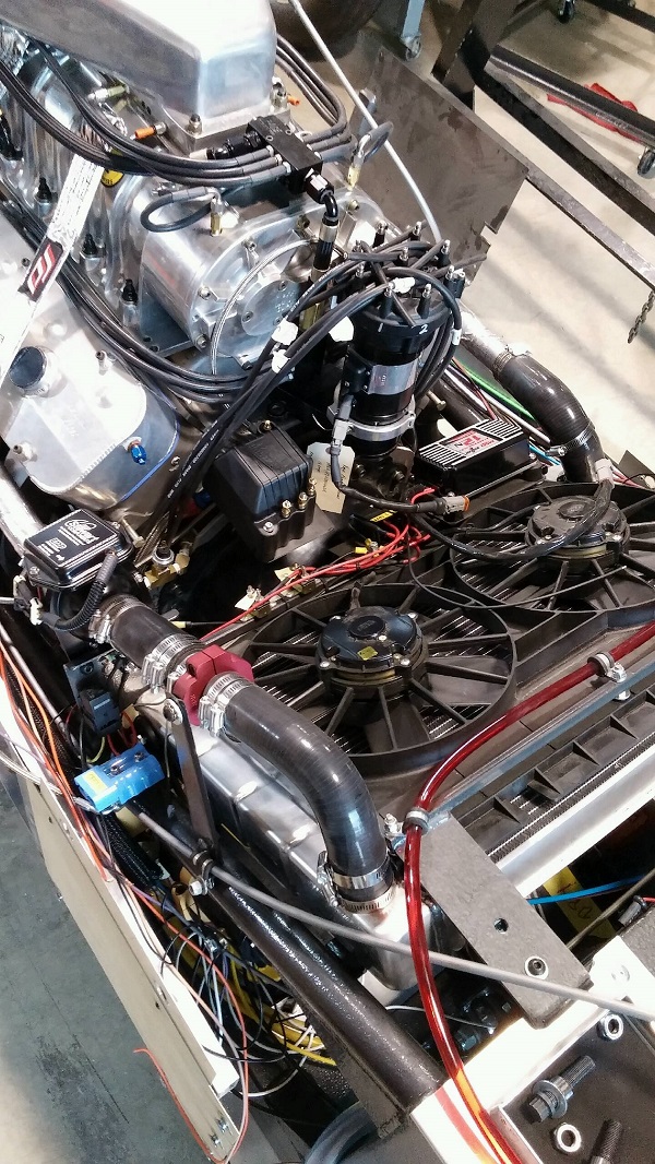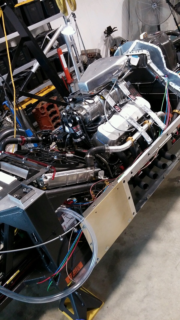 What happens from here? Mike has spent the weekend getting the engine plumbed and wired. Unfortunately it has to come out for the installation of the clutch. We hope it will be ready late this afternoon. Also, the body has to be slightly modified for the engine to fit so Mike will be cutting out a couple of holes and refitting with a “bubble” to get that worked out. Mike Kopchik is to come over one evening to test out the fuel system and then the graphics go on the car another evening.