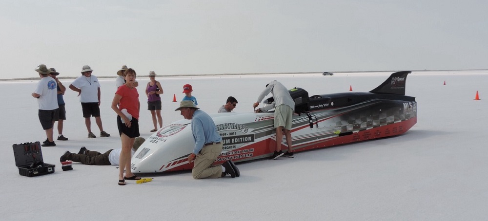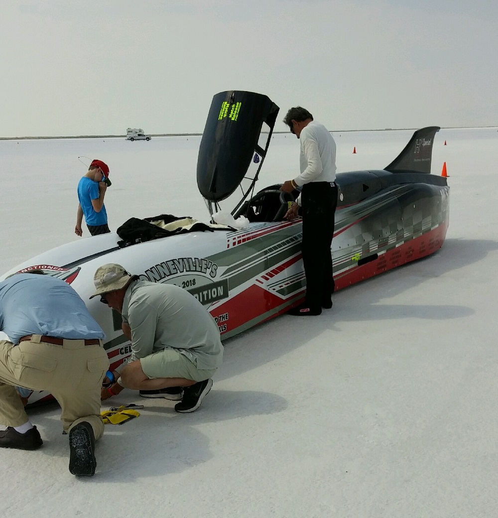 So after all we have had to end our trip without a pass in the streamliner at Speed Week 2018. Mike handled it very well. I think the issues we had encountered in the preceding weeks had prepared him for it. We were disappointed. However, the car is still in one piece and Mike is in one piece. We have had a wonderful trip. The crew has seemed to mesh well together. Should we get the opportunity I think they would all like to come with us again. If we had been able to make several passes as expected I am not sure I would have been keen on the idea of coming back again. However, without making any passes I think we will have to strongly consider another trip.
