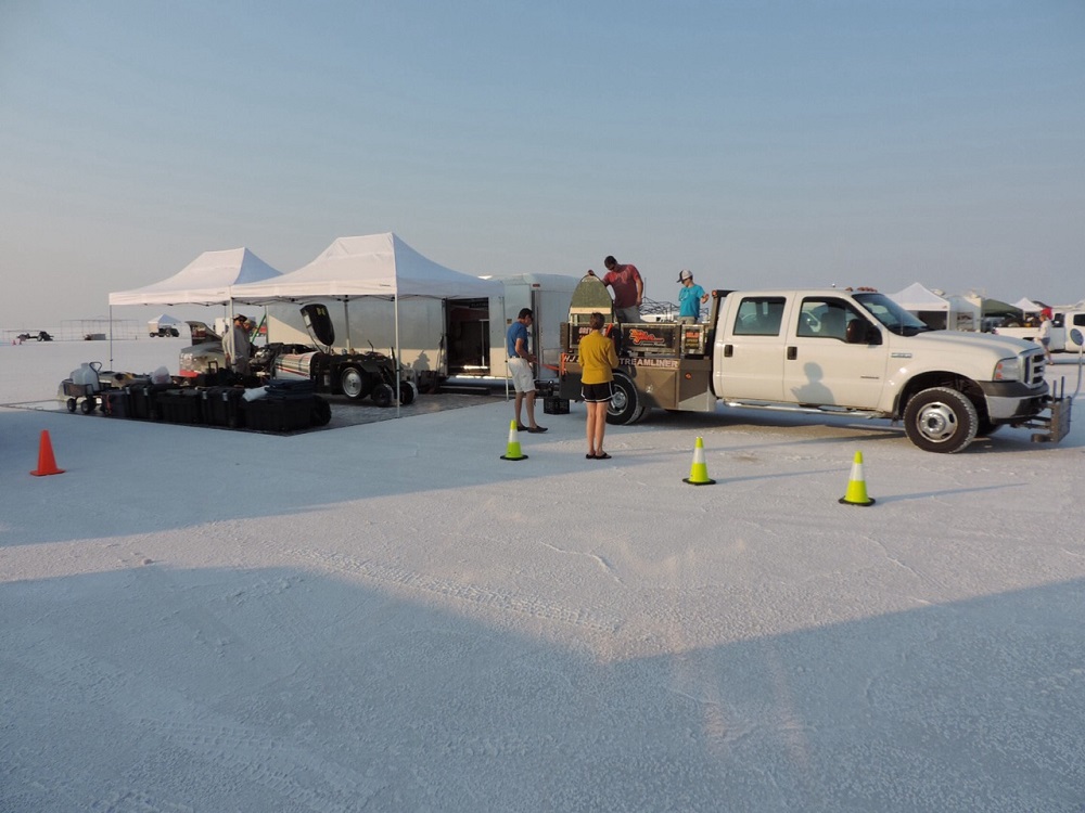 Today has been both good and not so good. We hoped to get through with the tech inspection and make a run. We had gotten the new C02 bottle from Salt Lake City so we were all set to move on. However, the C02 debacle was still not over. When the new bottle with the new regulator was hooked up it was leaking. We completely cut it off to prevent draining yet another bottle but had to determine exactly where the leak was and then how to fix it. Here we are early this morning in the pit area.