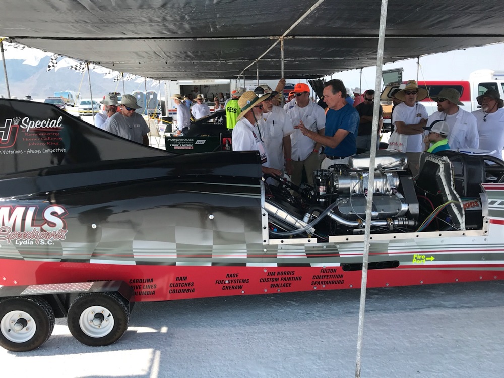 Tech is generally not a difficult experience for us. Mike is prepared. He does not take shortcuts and he is very knowledgeable about the car. As usual, we had no problem passing and he was granted the permission to pursue his goal of 300 mph. He must start by making runs at lower speeds, each incrementally faster. The first one will be 150 mph. To achieve this he will have to change out the gear set to “dumb down” the car’s ability.