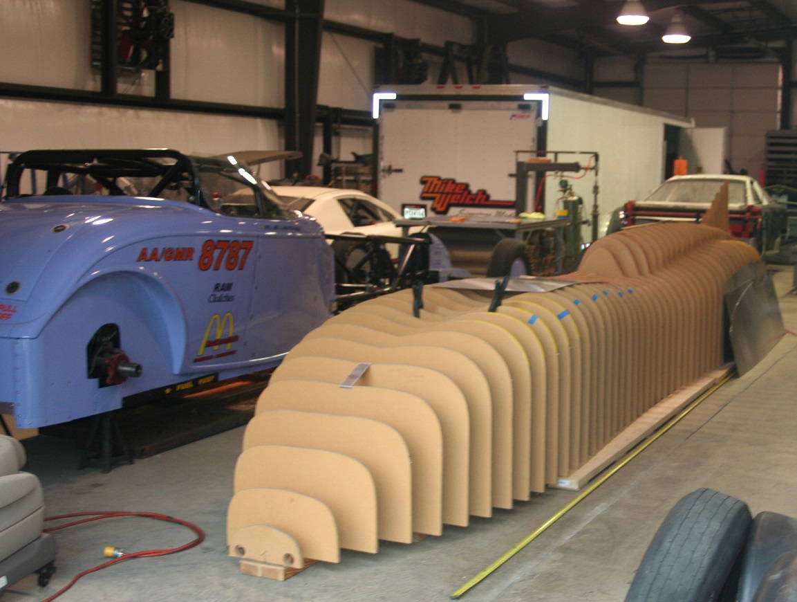 The buck became a fixture in the shop as Mike went on to other projects. About 3-1/2 years ago we decided that the time was right to get serious about the streamliner build. Naively we first planned to complete it in a year. As the months passed we had to admit the project was bigger than that and now we have been at it for over 3 years.