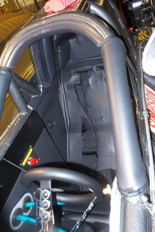 The driver’s compartment is a tight fit! Mike has modified it twice since the first configuration. He must be able to get himself out of the car by himself and within a few seconds in case of an emergency.
