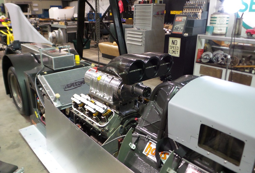 Here you see a mockup of the engine configuration. Gene Fulton of Fulton Competition is handling the engine build and Mike Kopchik of Rage Fuel Systems is supplying the complete fuel system (intake, blower, injector, pump and fuel tune-up). More on Fulton and Kopchik to come.