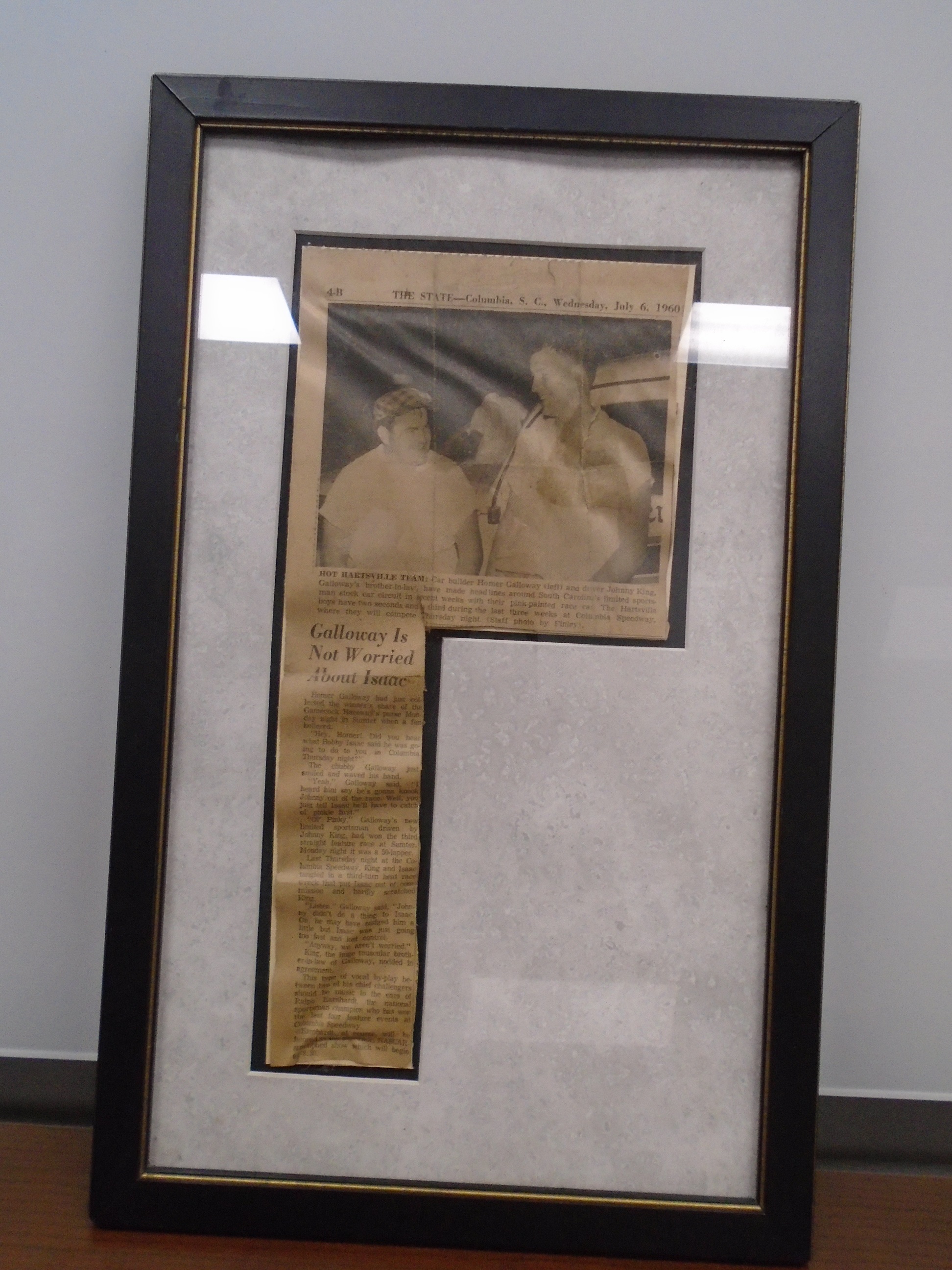Homer Galloway and Johnny King were local to the Lydia, South Carolina, area and were Mike’s heros in his “car guy” world. Mike and his brother and mother followed this dynamic duo all over the state to tracks in Hartsville, Sumter, Columbia and other places. There were other racers that Mike also idolized from a broader perspective. Ralph Earnhardt, Dale’s father, was probably the most revered. However, the Lydia community had its own highly successful pair in Homer and Johnny and they made quite an impression on Mike. He has a piece of wood mounted on the wall in his shop that came from Homer’s old garage. These two were VERY special to him.