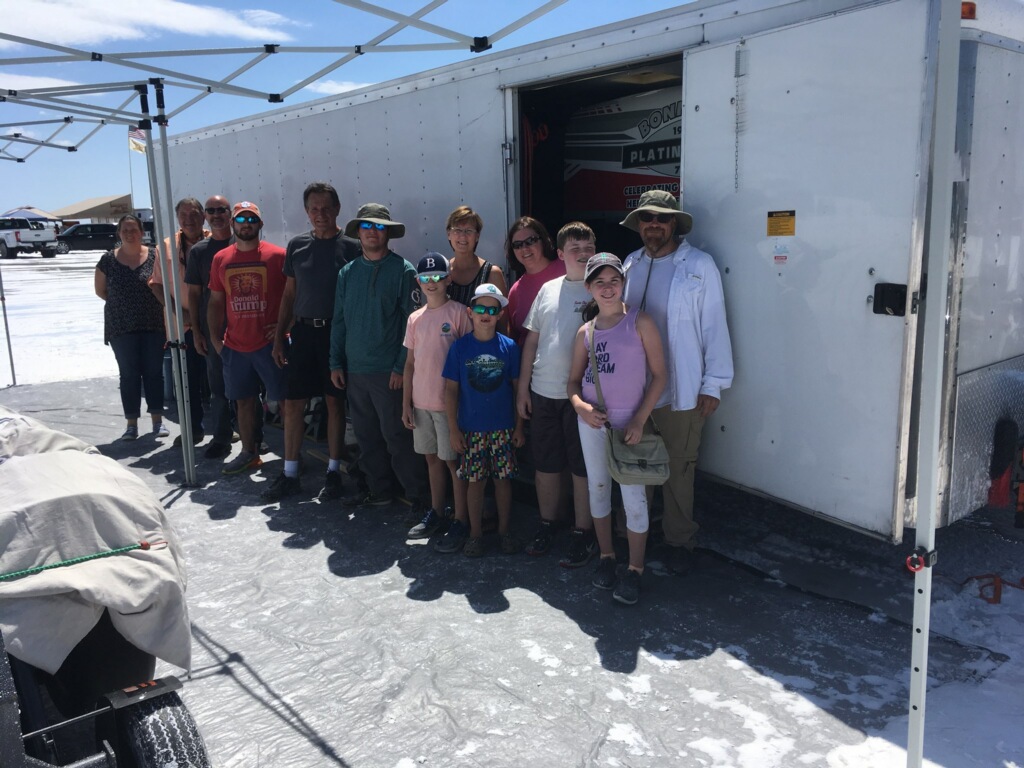 Our flight was on time and we got to the salt at about 1pm. The kids rode bikes on the salt and we all waded through it to get our pit crew arm bands. Mike spent time with both Danny Thompson and George Poteet.