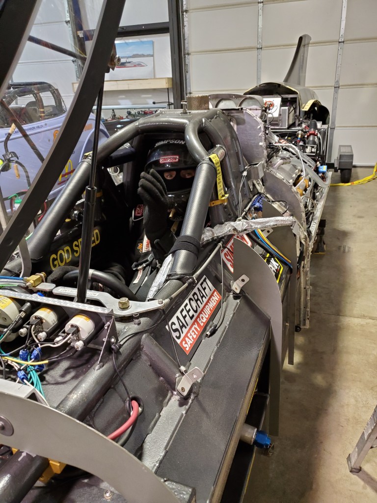 Mike will be leaving in a few days. He will be driving out by himself this year so he will allow a few extra days to get there. We are hoping for dry weather, good salt and successful runs. I will report back as the events transpire. Mike has been practicing ejecting from the car in this photo. He has some new harnesses and we needed to make sure everything is adjusted just right.