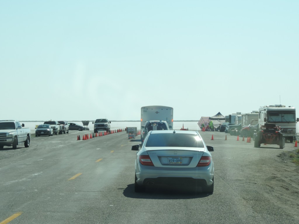You will have to use your imagination here. This is an old photo of the access road. However, it is not what Mike will experience this morning. We are generally in this line with the sun coming up. It is a pretty sight. As well, I would imagine there will be a lot of activity with this being the first day racers and crews are allowed on the salt.