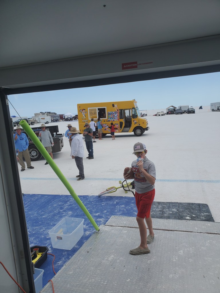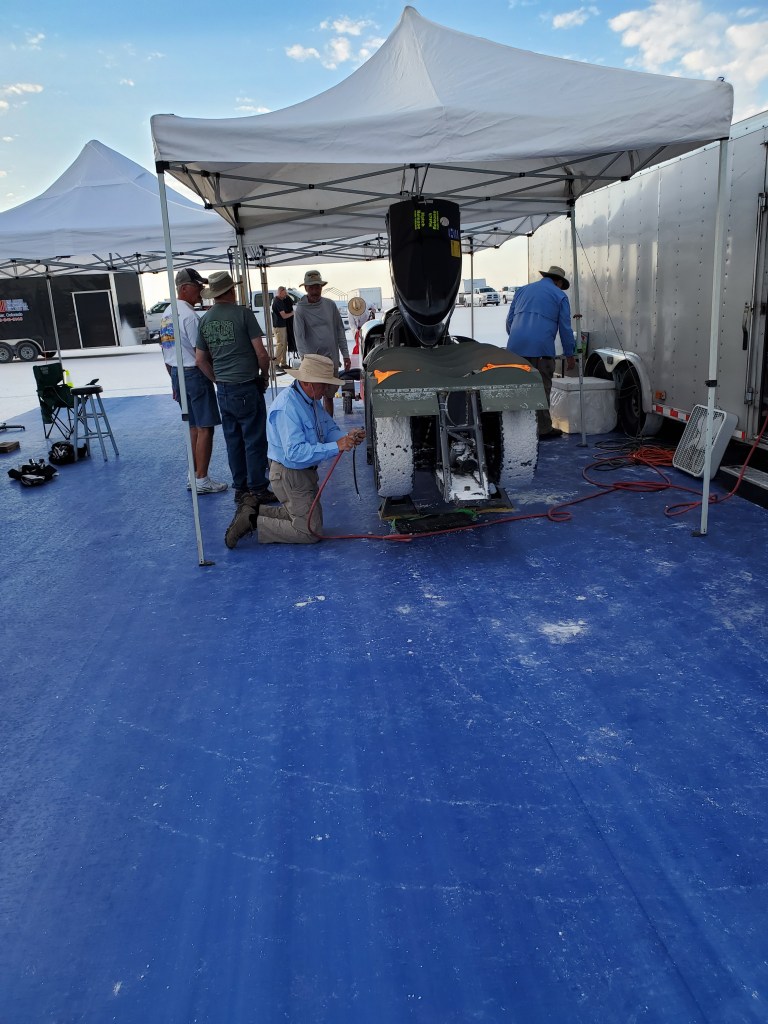 The group had the chance to see George Poteet run over 450 mph in his Speed Demon streamliner. What a thrill! On a heavier note we found out yesterday that a motorcycle entry lost control at 252 mph. It is serious business.