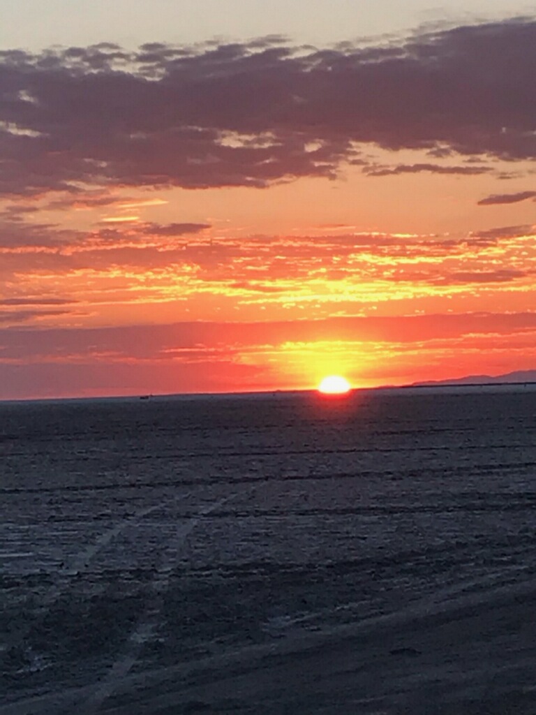 By the way, the Salt Flats trip was hard on me this year. I was taking care of the animals back home while Mike was travelling and stepped in a hole in the yard so I started out the trip with a swollen foot. On the second morning on the salt I tripped over the tow bar while we were in line to make a run. Always the klutz. The result of that was a skinned and bruised knee and elbow and a big 6-inch diameter bruise on my hip on the same side as my swollen foot. On the last day I broke my glasses. Mike took me down to the local Family Dollar store to buy some cheaters. I look like super fly in them. On the way home a carpenter bee blew into the truck and stung me on my shoulder and back and I ate some ice cream that made me nauseated and caused us to stop early for the day so I could recover. I was a sight . . . glad to be home.